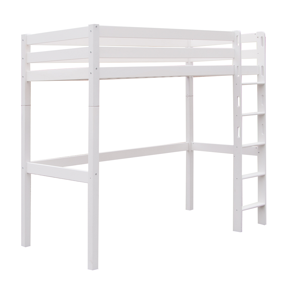 This sturdy and smart, modern high sleeper loft bed offers a bunk bed with large, full length desk underneath. The loft bed frame is crafted from solid Beech hardwood (no soft, knotty Pine in sight!) It’s designed to last throughout the years and is finished in a durable and non toxic Pure White paint.The ladder is fixed vertically against the frame, providing a sleeping solution for even the most compact child’s room, and offers hand grips along the sides for a safe and easy climb. A desk that runs underneath the full length of the bed makes for the perfect place to study and craft, and storage bookcase and chest of drawer options are also available – ideal for stashing away toys, clothes or keepsakes. Designed to sit neatly under the desk, the storage units are also freestanding, so they can be moved (on 4 lockable castors) into another space entirely and making it even more useful for years to come.
